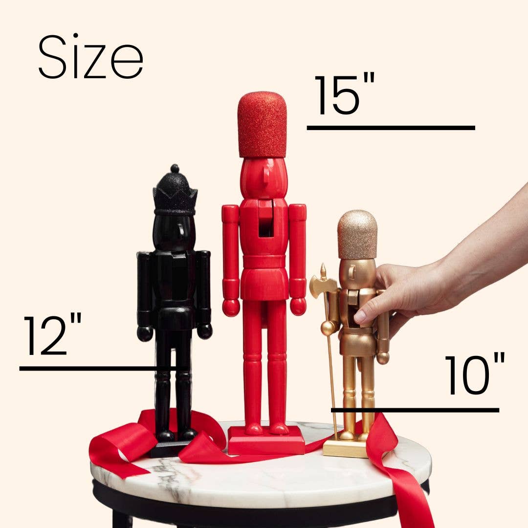 This 10 inch Soldier Nutcracker is part of our Rose Gold Collection. Clad in a fancy rose gold and pink outfit and wearing a furry white hat, this soldier adds style wherever he goes. His boots are adorned with sparkling red rhinestones and he holds a gold spear with white tassels.